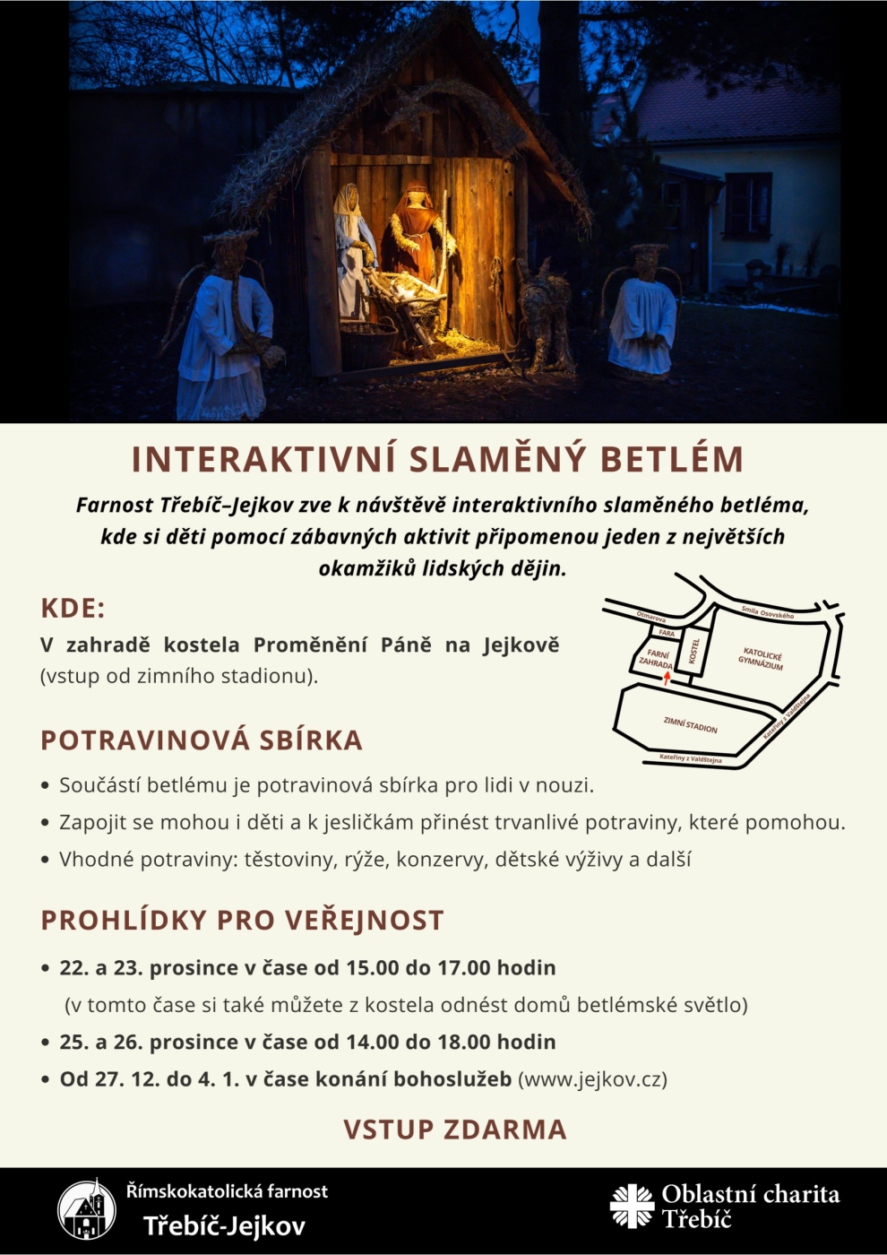 Farnost Třebíč–Jejkov zve k návštěvě interaktivního slaměného betléma,