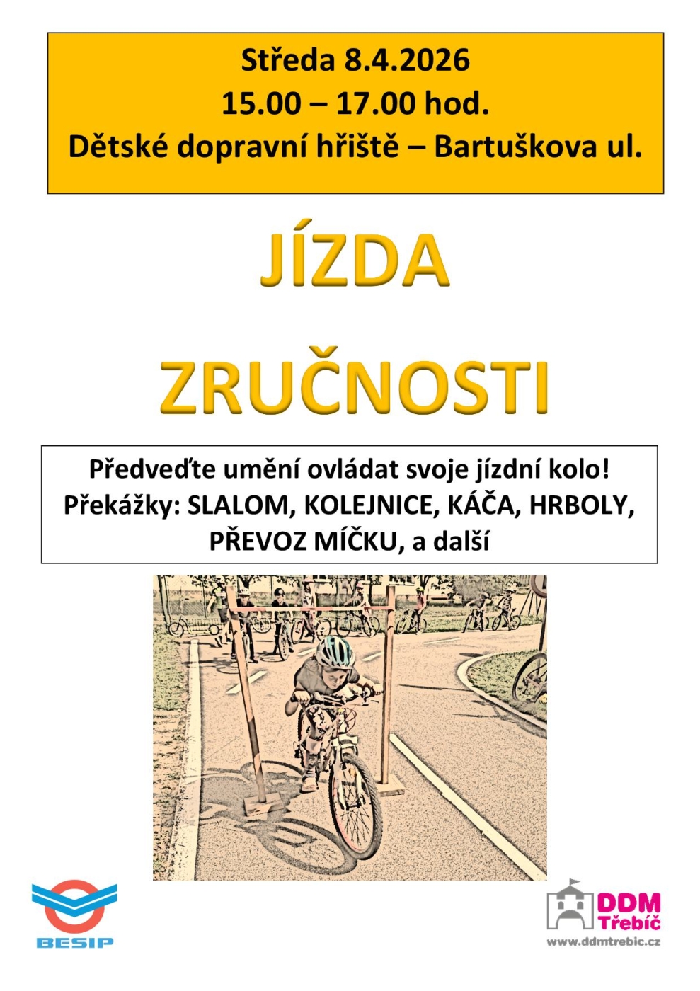 Nácvik ovládání jízdního kola s pomocí různých překážek.