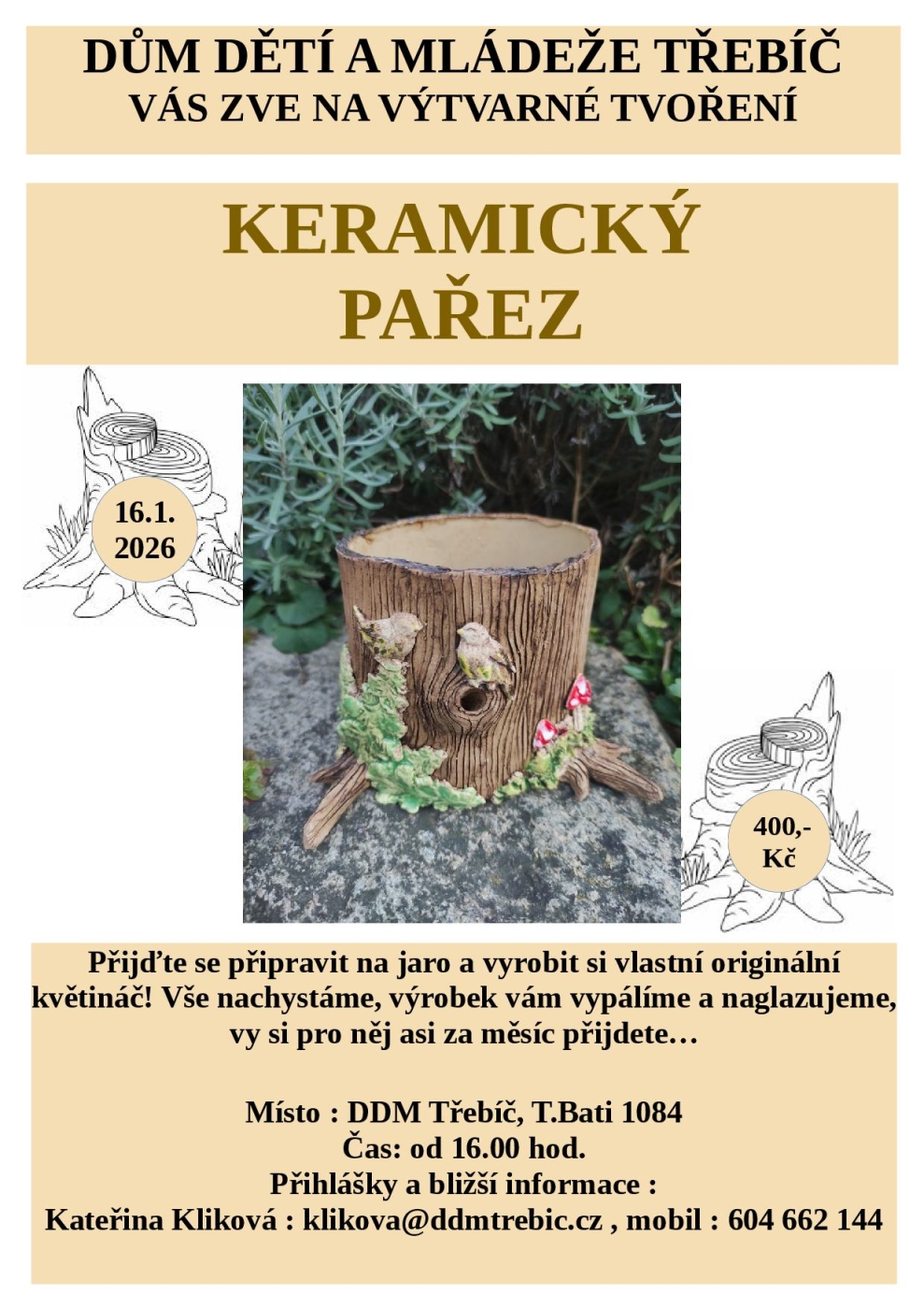 Přijďte se připravit na jaro a vyrobit si vlastní originální květináč ve tvaru pařezu.