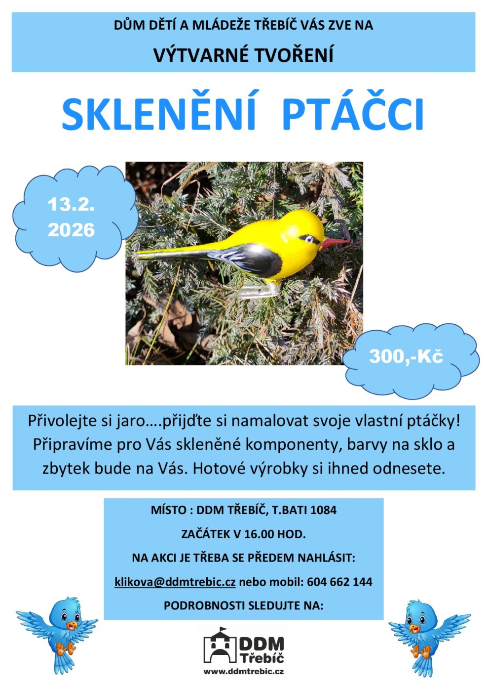 Přijďte si namalovat své vlastní skleněné ptáčky a připravit se na příchod jara.